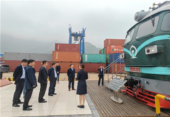 會后,陳士彬陪同客人一行現場調研新亞歐大陸零公里標志、集裝箱碼頭,深入介紹港口多式聯運優勢、國際班列運輸等情況。