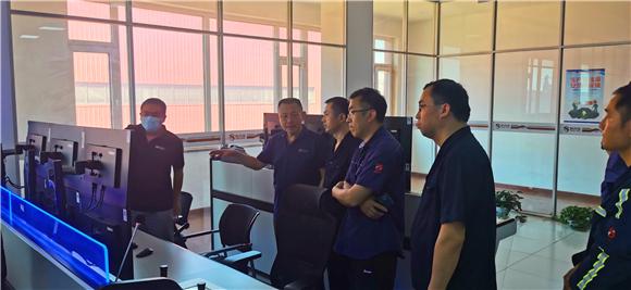 在碼頭現場,胡永濤一行對公司安全生產及環保工作情況進行考察,現場聽取了關于碼頭10#堆場建設、40萬噸礦石碼頭改擴建工程、五星級綠色港口復審等重點項目的推進落實情況,同時觀看了遠程無人操作系統的運行流程,并對公司智能化建設工作進行了簡要了解和指導。
